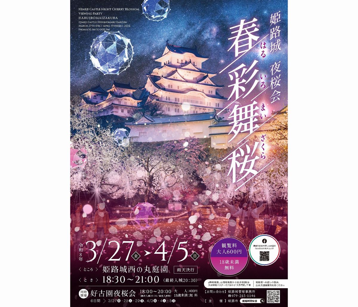 【姫路市】歴史と桜が織りなす夜景!2026年3月27日(金)から4月5日(日)まで、姫路城夜桜会「春彩舞桜(はるいろまいざくら)」が開催されます!